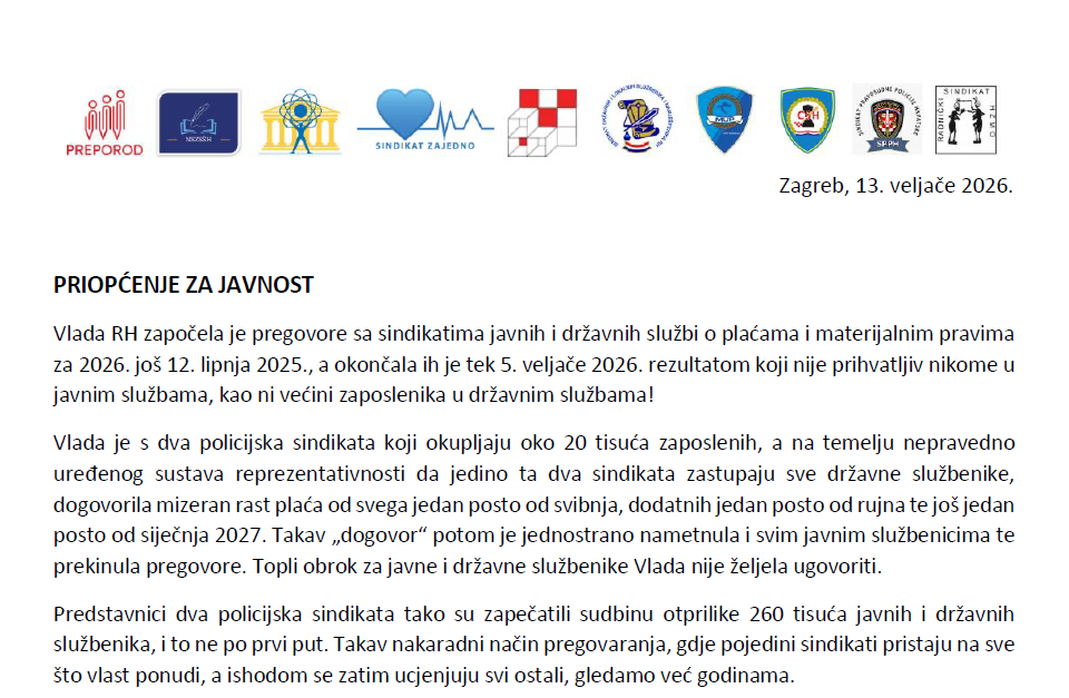 Link na dokument : Odgovor sindikata javnih službi Vladi RH_260129_140451