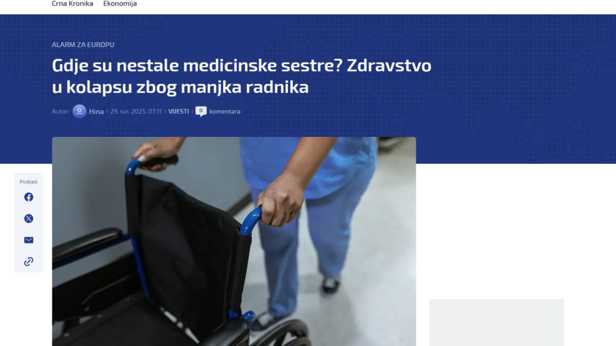 Liječnici, medicinske sestre, njegovatelji, ljekarnici: svugdje u Europi manjak medicinskih djelatnika pritišće sektor koji je godinama u krizi, piše Europska novinska redakcija (ENR), u kojoj je i Hina.