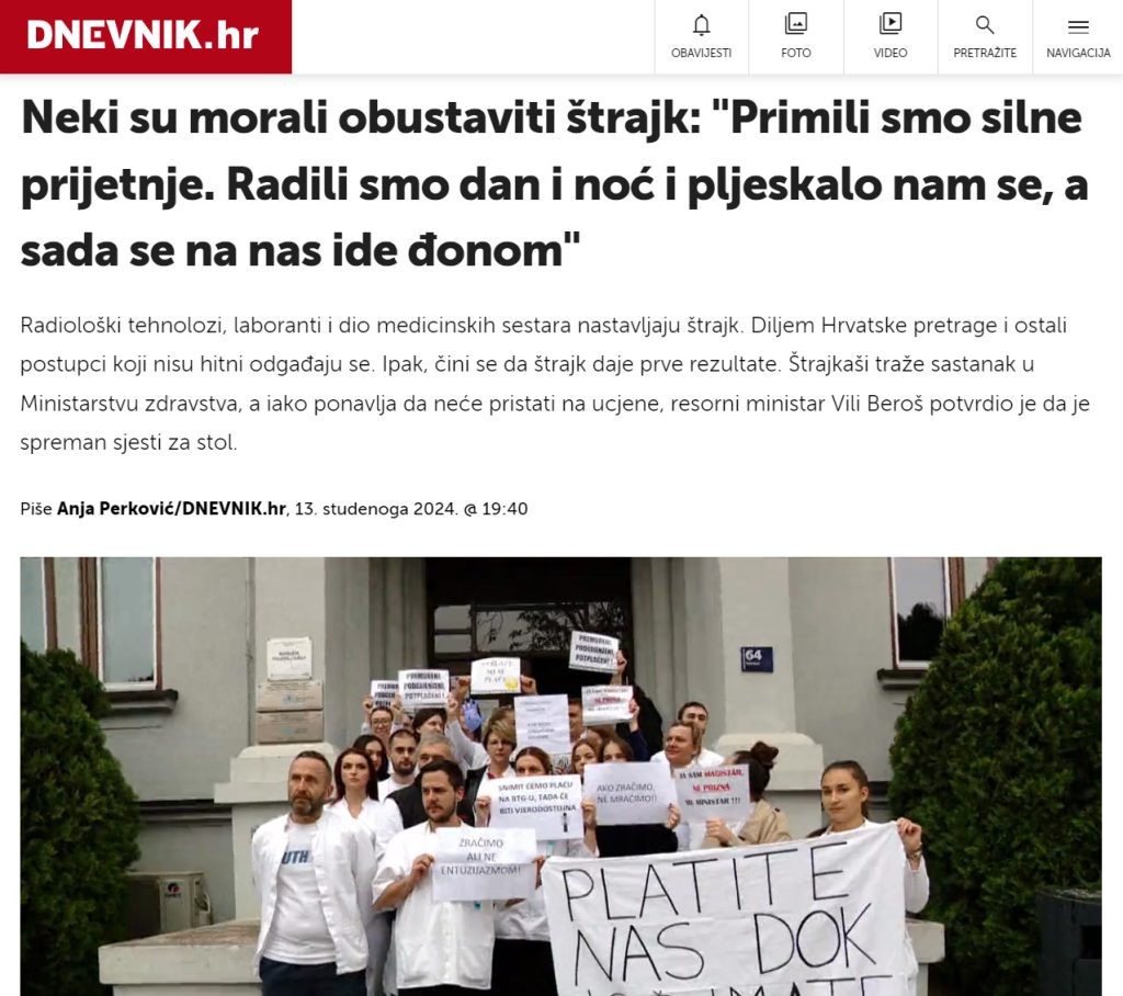 Izvor: Dnevnik.hr Radiološki tehnolozi, laboranti i dio medicinskih sestara nastavljaju štrajk. Diljem Hrvatske pretrage i ostali postupci koji nisu hitni odgađaju se. Ipak, čini se da […]