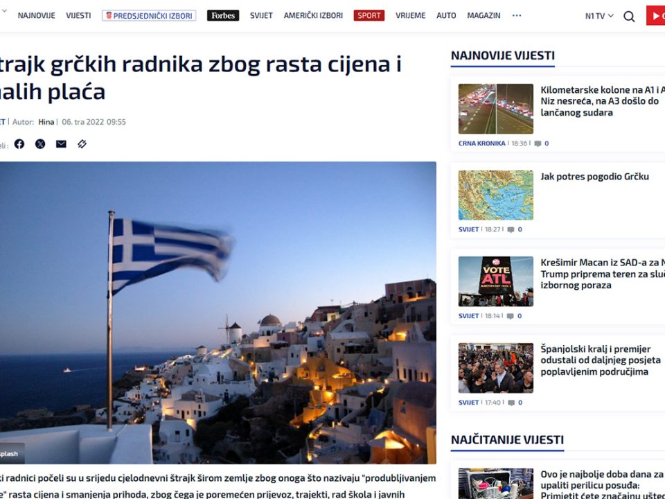 Izvor: n1info.hr Grčki radnici počeli su u srijedu cjelodnevni štrajk širom zemlje zbog onoga što nazivaju “produbljivanjem krize” rasta cijena i smanjenja prihoda, zbog čega je poremećen prijevoz, trajekti, rad […]