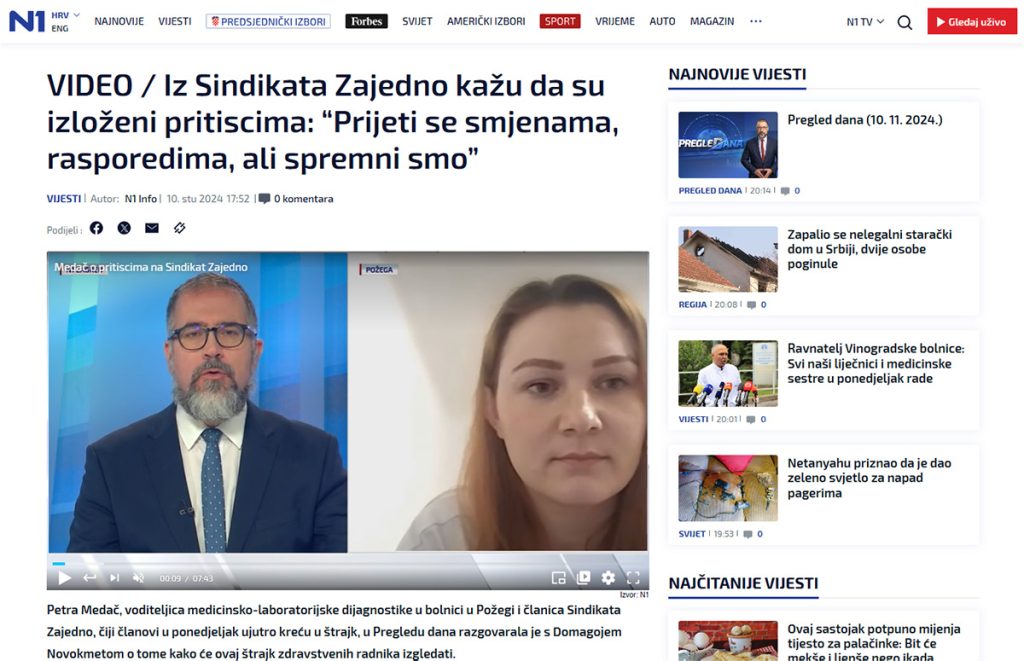 Izvor: n1info.hr Petra Medač, voditeljica medicinsko-laboratorijske dijagnostike u bolnici u Požegi i članica Sindikata Zajedno, čiji članovi u ponedjeljak ujutro kreću u štrajk, u Pregledu dana […]