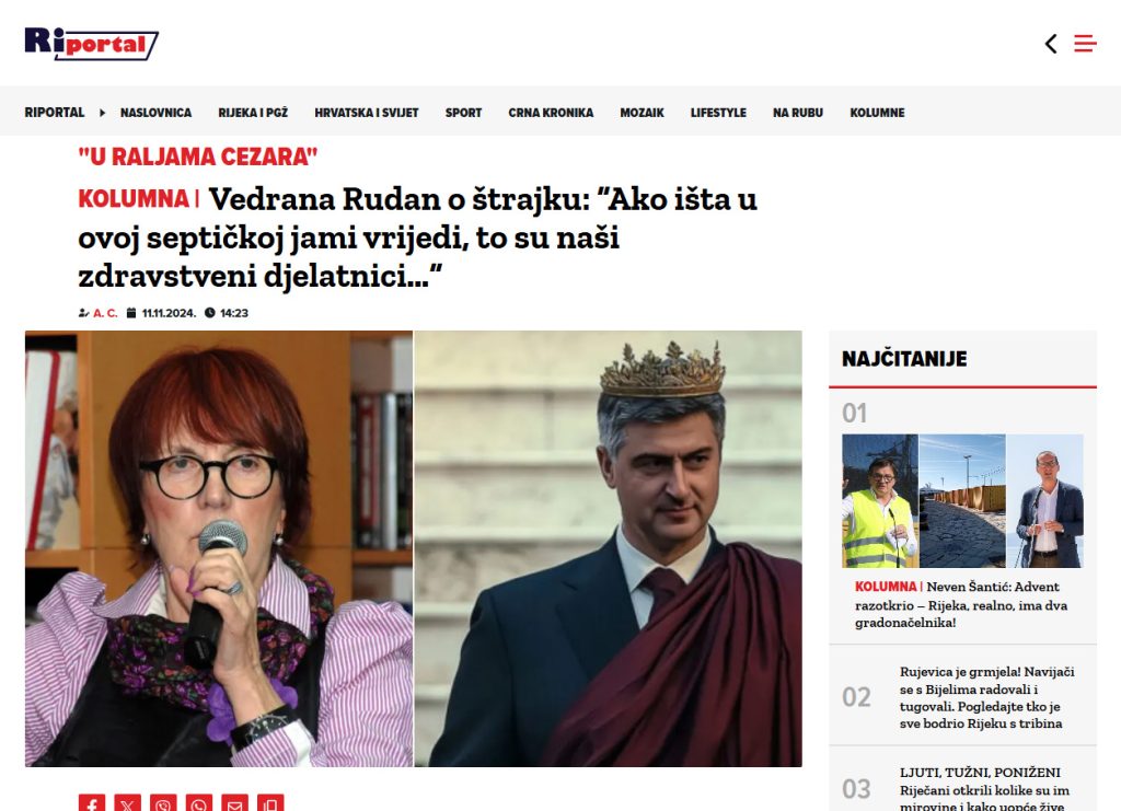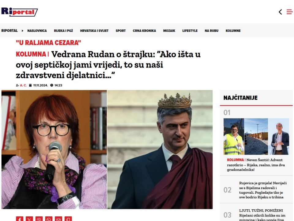 Kolumna | Vedrana Rudan o štrajku: “Ako išta u ovoj septičkoj jami vrijedi, to su naši zdravstveni djelatnici…” Izvor: riportal.net.hr Poznata riječka spisateljica Vedrana Rudan ne prestaje […]